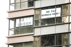 貼標(biāo)語(yǔ)抗議“稅所入駐”