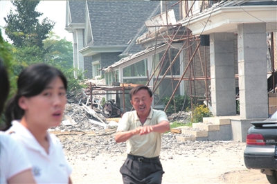 他說,物業(yè)不得已向昌平區(qū)規(guī)劃局和城管大隊(duì)進(jìn)行舉報(bào),幾年下來僅舉報(bào)材料堆起來有一米多高。城管和規(guī)劃局工作人員經(jīng)常來調(diào)查,但仍無法阻止業(yè)主的私搭亂建行為。物業(yè)有一次曾想調(diào)集保安進(jìn)行強(qiáng)制停工,但行動(dòng)前接到消息稱,正在改擴(kuò)建的別墅主人是一名餐飲業(yè)老總,這人從公司糾集了100多名保安要“護(hù)園”,為避免發(fā)生沖突,物業(yè)只得取消行動(dòng)。這名總經(jīng)理同時(shí)稱,施工前,業(yè)主交給物業(yè)的都是裝修圖,但一開建就變了味。