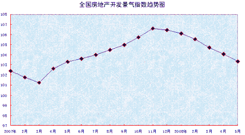 中新網(wǎng)6月18日電 據(jù)國家統(tǒng)計(jì)局網(wǎng)站消息,5月份,“國房景氣指數(shù)”為103.34,比4月份回落0.73點(diǎn),與去年同月基本持平。