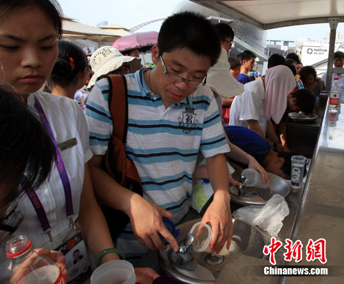 目前,世博園區(qū)共有105個直飲點,其中浦東76個、浦西29個,可同時供1568人飲水。氣溫回升和客流量增大,園區(qū)直飲點成為最“火爆”的設(shè)施。