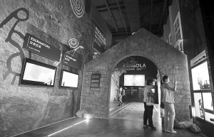 安哥拉館注重用多種元素表達(dá)土著文化,比如館內(nèi)墻上有反映土著人生活場(chǎng)景的巖畫。在安哥拉,巖畫是當(dāng)?shù)厝讼猜剺芬姷乃囆g(shù)門類,遍布安哥拉從北到南40多個(gè)地區(qū),內(nèi)容以動(dòng)物、人物及各種場(chǎng)景圖案為主。