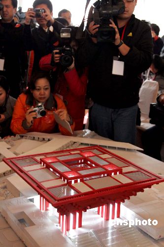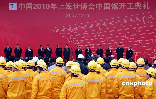 十二月十八日,凝聚全球華人智慧的中國(guó)二0一0年上海世博會(huì)中國(guó)館在上海黃浦江畔舉行開(kāi)工典禮。據(jù)介紹,作為上海世博會(huì)的永久性場(chǎng)館之一,總用地面積為六點(diǎn)五二公頃,總預(yù)算十五億元人民幣。整個(gè)中國(guó)館區(qū)由國(guó)家館、地區(qū)館、港澳臺(tái)館等三個(gè)部分組成。中新社發(fā) 潘索菲 攝