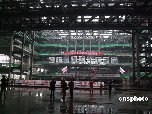 十月三十日,中國2010年上海世博會的永久性核心建筑之一“世博中心”,結(jié)構(gòu)封頂。世博中心位于黃浦江東岸、上海世博會規(guī)劃圍欄區(qū)B片區(qū),項目占地面積六點六五公頃,總建筑面積約十四點二萬平方米。2010年上海世博會期間將作為世博會慶典活動、招待宴請和論壇活動的舉辦場所,世博會后將轉(zhuǎn)型為國際一流會議中心。中新社發(fā) 鄭瑩瑩 攝