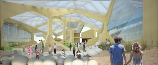 迎接觀眾的第一道自然景觀是海岸,將著重體現(xiàn)對能源的合理應用。這里將向觀眾顯示怎樣通過利用太陽能、風能和波浪能等可再生能源,來提高人們的生活品質(zhì),改善城市地區(qū)的氣候。