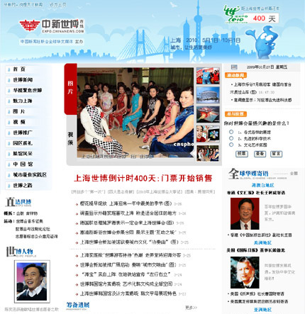中新網3月27日電 2010年上海世界博覽會今日進入倒計時400天,中國新聞社聯合海外華文媒體創(chuàng)辦的“中新世博在線(expo.chinanews.com)”正式上線。在此之際,海外華文媒體通過“中新世博在線”寄語上海世博會(expo.chinanews.com/more/hmjy.html),表達華人對中國舉辦世博會的驕傲和自豪,期盼上海世博會成功、精彩。