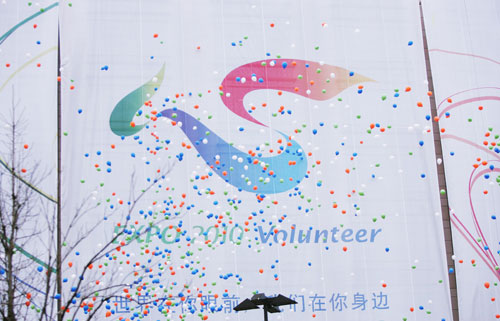 今天上午,“志愿世博 文明上!敝袊2010年上海世博會志愿者標(biāo)志、口號、歌曲發(fā)布儀式暨迎世博、講文明、樹新風(fēng)“三五”志愿服務(wù)集中大行動在上海市五卅紀(jì)念廣場隆重舉行。