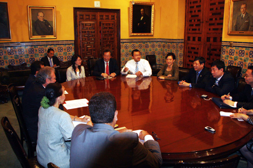 代表團隨后與秘魯外交部副部長岡薩羅·古鐵雷斯(Gonzalo Gutierrez Reinel)、外交部教育文化交流局局長等秘魯參展上海世博會事務(wù)的相關(guān)負(fù)責(zé)人舉行會談,研究秘方和組織者簽約及后續(xù)合作等涉及秘魯參展籌備的具體事宜。古表示,上海世博會對于增進中秘兩國友好關(guān)系和人民之間的了解具有非常的積極意義,感謝上海世博會組織者對于秘魯參展工作所給予的支持。