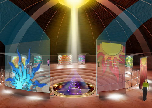 印度館設(shè)計(jì)師之一Naidu表示,古色古香的印度館其實(shí)內(nèi)含高科技元素。印度館使用的建筑材料大部分均為可再利用材料。建筑設(shè)計(jì)中大力推行低能耗的手工材料,鼓勵(lì)重復(fù)利用。采用最先進(jìn)的制冷與照明系統(tǒng),實(shí)現(xiàn)低能耗高效率。小型風(fēng)車與屋頂上的太陽能電池充分利用永久性的可再生能源。零化學(xué)物質(zhì)的場館設(shè)計(jì),安全排放無污染。經(jīng)過工廠處理的再循環(huán)水將用于綠化灌溉,并將展示一個(gè)雨水收集系統(tǒng)。中央穹頂外覆各種草本植物,配以銅質(zhì)生命之樹,楠竹網(wǎng)格與鋼筋混凝土的使用織就了一個(gè)吸音天花板。太陽能電池板、風(fēng)車以及穹頂上草本與竹木等建筑元素的運(yùn)用,充分體現(xiàn)節(jié)能高效的理念。