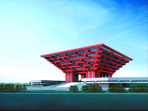在上海市中心黃浦江兩岸,南浦大橋和盧浦大橋之間的濱江地區(qū),名為“東方之冠”的2010年上海世博會中國國家館正準(zhǔn)備進行最重要的一道妝扮——在展館外立面上安裝“中國紅”的裝飾板。年底之前,“東方之冠”將全面竣工,作為永久性場館建筑屹立在黃浦江畔。