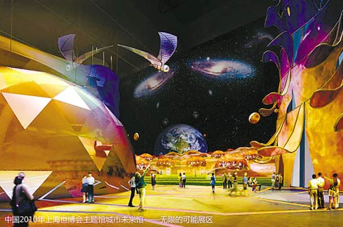 城市未來館的設(shè)計(jì)師重點(diǎn)推薦“未來就在這里”和“無限的可能”兩個展區(qū)!拔磥砭驮谶@里”展區(qū)是一個動態(tài)城市模型的舞臺!盁o限的可能”將在“和諧廣場”上,放映暢想未來城市的各種可能性的動畫電影。