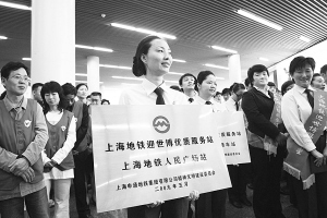 今天上午,上海地鐵命名首批“迎世博”先進(jìn)及志愿服務(wù)隊(duì)標(biāo)兵,命名儀式在人民廣場(chǎng)站換乘大廳舉行。