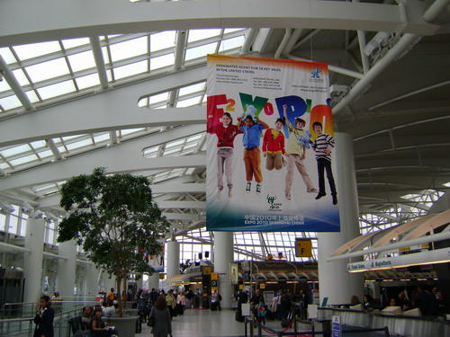 5月14日,從今年4月20日起,上海世博會(huì)公益廣告出現(xiàn)在美國(guó)紐約機(jī)場(chǎng)、美國(guó)洛杉磯機(jī)場(chǎng)、英國(guó)西斯羅機(jī)場(chǎng)、法國(guó)戴高樂(lè)機(jī)場(chǎng)、德國(guó)法蘭克福機(jī)場(chǎng)、日本成田機(jī)場(chǎng)、韓國(guó)仁川機(jī)場(chǎng)。在上海世博會(huì)宣傳公益廣告上,不同膚色的孩子們懷抱著世博吉祥物海寶,一張張熱情的笑臉歡迎著五湖四海的人們。