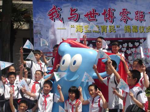 在“海寶”揭幕儀式上,學(xué)生代表表示,要努力學(xué)文化、學(xué)知識、學(xué)禮儀,從身邊的小事做起,積極行動(dòng),迎接世博、奉獻(xiàn)世博。
