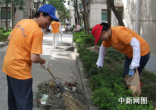 中新網(wǎng)上海7月15日電(鄭瑩瑩 田佳)十五日是上海迎世博的“環(huán)境清潔日”,一大早,毗鄰中國館的浦東世博社區(qū)周家渡街道就開始整潔社區(qū)“容貌”大作戰(zhàn),百余名志愿者身著橙色衣服,清理社區(qū)衛(wèi)生死角,讓社區(qū)內(nèi)刮過一陣“清潔風(fēng)”。
