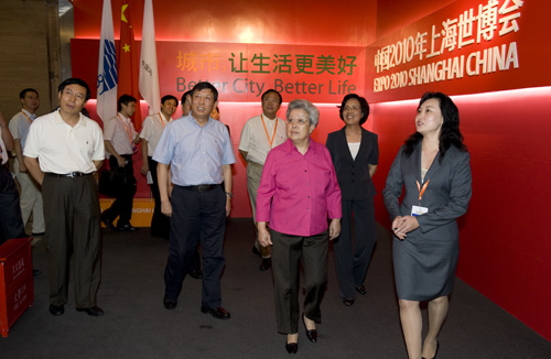 吳儀對(duì)展覽內(nèi)容都十分關(guān)注。她仔細(xì)觀看展品,認(rèn)真聽取介紹,并不時(shí)向工作人員詢問有關(guān)情況,了解世博會(huì)籌備的最新進(jìn)展,對(duì)籌辦工作取得的成績(jī)給予充分肯定。