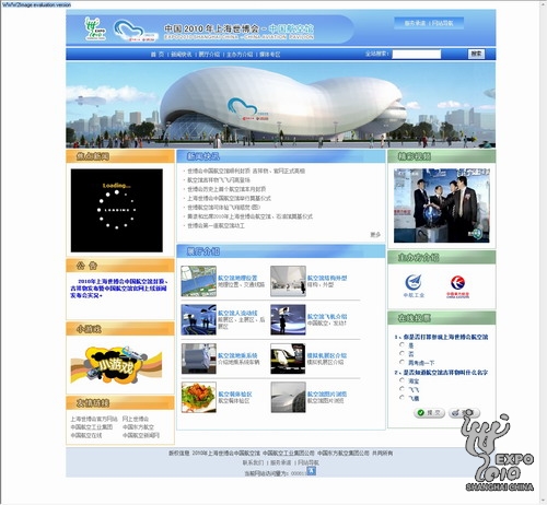 中新網(wǎng)12月15日電 據(jù)上海世博會(huì)官方網(wǎng)站消息,近日,上海世博會(huì)中國航空館官方網(wǎng)站正式開通。關(guān)注中國航空館建設(shè)進(jìn)程的各界人士,可通過官網(wǎng)獲得及時(shí)、準(zhǔn)確的信息。
