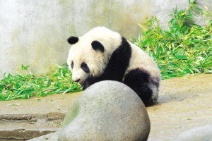 據(jù)介紹,“閩閩”出生于2008年9月3日晚,雌性,出生時體重102.8克,來上海時已長到35公斤!伴}閩”的媽媽叫“竹韻”,第一次做母親就產(chǎn)下了雙胞胎,“閩閩”是其中的妹妹。她尖嘴、臉較圓,最喜歡和人玩耍,經(jīng)常爬在鐵欄上“深情”呼喚飼養(yǎng)員,是個典型的人來瘋。
