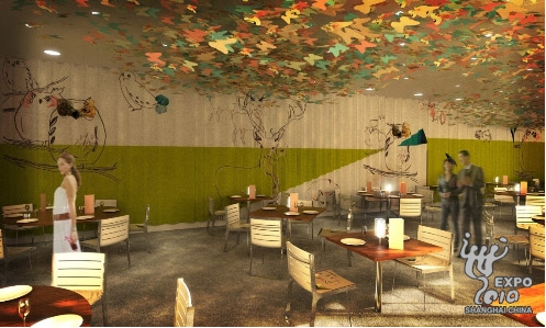 位于展館最頂層的“第六感”餐廳是法國(guó)館內(nèi)不可錯(cuò)過(guò)的一道風(fēng)景。交由“蒙彼利埃雙胞胎”波塞爾兄弟經(jīng)營(yíng)的“第六感”餐廳完美地補(bǔ)充了法國(guó)館參觀體驗(yàn)中的味覺(jué)亮點(diǎn),參觀者將在其中度過(guò)難以忘懷的美食一刻。