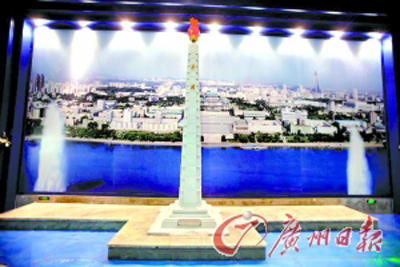 在世博會(huì)159年的歷史上,上海世博會(huì)是朝鮮第一次參加的世博會(huì)。以“人民的樂園”為主題的朝鮮館緊挨著伊朗館,展館以國旗、千里馬銅像等圖案裝飾外墻,以主體思想塔、大同江、朝鮮式?jīng)鐾、假山、小石洞為主要展?xiàng),運(yùn)用高科技手段展示首都平壞既古老又現(xiàn)代的風(fēng)貌和朝鮮秀美的風(fēng)光、獨(dú)特的文化以及在教育、科學(xué)、文化、體育等領(lǐng)域取得的巨大成就。朝鮮館工作人員胸前都佩戴著金日成頭像的像章。在朝鮮館內(nèi),還放置著幾臺(tái)電視機(jī),正在播放著反映朝鮮人民生活的錄像,不少游客駐足觀看。