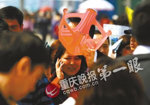 在浦西園區(qū)上海聯(lián)合企業(yè)館前,排隊(duì)的圍欄設(shè)計(jì)成了弧線,觀眾只需稍稍將身子一仰,就可以將背包等靠在圍欄上,節(jié)省體力。在一些排隊(duì)較長(zhǎng)的展館前,志愿者不時(shí)上前提醒游客,用地圖或衣服遮住頭部。