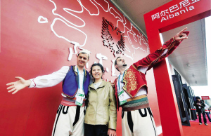 阿爾巴尼亞館的外墻,是一片耀眼的國旗紅;一只展翅的雄鷹,彰顯出山地民族的剛毅和堅韌。這個地中海國家有個流傳千年的傳說:上帝造物時,安排好地球上陸地、海洋、平原、山川之后,口袋里還剩下一些石塊,他順手扔去,石子變成了連綿起伏的山脈——阿爾巴尼亞。