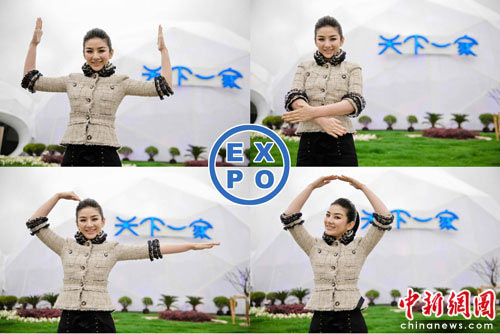 中新網(wǎng)5月11日電 作為“世博手勢(shì)形象大使”,同時(shí)也是上海女孩,黃奕日前來到世博館“天下一家”未來館門口,拍攝一組手勢(shì)大片,身體力行教大家如何演繹EXPO的含義。