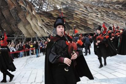 昨天(17日)下午,50位穿著十八世紀傳統(tǒng)服裝的風(fēng)笛手在西班牙國家館的廣場上演奏傳統(tǒng)音樂,開啟了世博會西班牙國家館加里西亞周的活動。