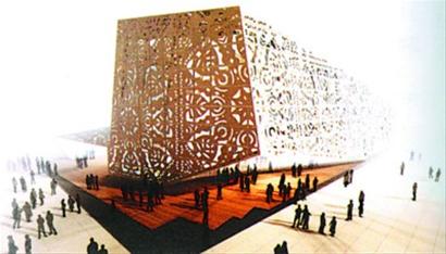 波蘭館外形抽象且不規(guī)則,表面布滿鏤空花紋,仿若民間剪紙,使參觀者獲得有趣的視覺體驗(yàn):色彩變幻的光線穿過剪紙圖案在館內(nèi)營造一種明暗錯(cuò)落的效果。