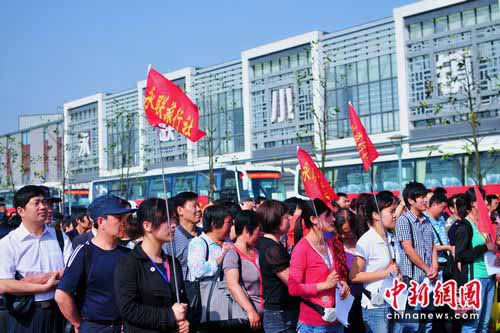 中新網(wǎng)張家港5月25日電(李克祥)“放眼看世界,享受新生活。”今天清晨,以此為主題的“萬(wàn)人游世博”在張家港永聯(lián)村正式啟動(dòng),由350名村民職工代表組成的首發(fā)團(tuán),登上開(kāi)往上海世博園區(qū)的“幸!贝蟀停瑢(shí)現(xiàn)不出國(guó)門的“出國(guó)”開(kāi)眼界之旅。