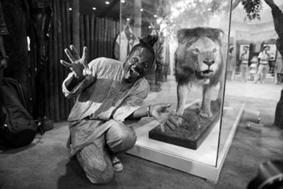 今天,游客走進非洲聯(lián)合館,會看到很多驚喜:為了使許多沒有機會去非洲的觀眾親眼目睹原汁原味的非洲動物,素有“野生動物天堂”之稱的東非國家肯尼亞特別給上海世博會帶來兩份神秘禮物:“獅子標本”和“寶寶犀牛標本”。威猛的“獅子王”與可愛的“寶寶犀!睂⒃诮酉聛淼娜兆永镌诳夏醽喺桂^中歡迎八方來客。(楊玉紅)