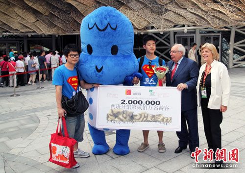 中新網(wǎng)上海6月22日電(記者 殷春永)上海世博會(huì)西班牙館21日迎來(lái)第200萬(wàn)名游客,除外觀酷似“大籃子”的造型給人們難忘的印象外,該館的接待人員能說西班牙語(yǔ)、中文和英語(yǔ),亦頗受游客贊賞。