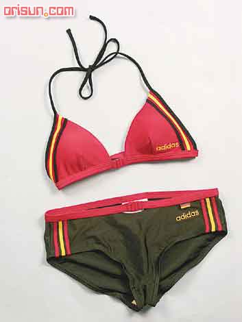 adidas泳衣不但保留了三點式設(shè)計,平角的剪裁亦一樣很運動。