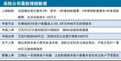 昨日,上海保監(jiān)局向《國際金融報》記者透露,已經(jīng)在第一時間啟動應(yīng)急預(yù)案,采取緊急措施通過短信平臺向上海市保險公司發(fā)送保險排查通知,要求及時做好理賠工作。目前,太平洋保險向上海市靜安區(qū)江寧路街道支付的400萬元是最大單筆保險金。