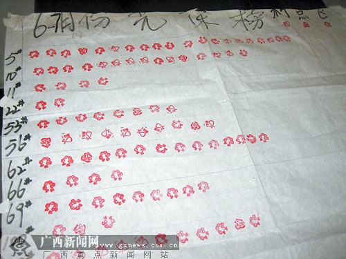 據(jù)稱,這個光榮榜上的小紅戳均只代表給予賣淫女的精神嘉獎。