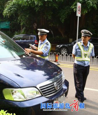 據在現場的市民李先生介紹,昨日上午,他和朋友開車到古玩一條街閑逛,可因前方堵車,一直無法進入,李先生隨即下車走到路口發(fā)現,原來有兩輛軍車和一輛省政府公務車違規(guī)在路邊停車,導致交通堵塞。就在車主們焦急等待的時候,海口交警及時趕來,疏導了現場的交通后,毫不猶豫地對這些違規(guī)停車的“特權車”及其他私家車開出罰單。(國際旅游島商報 記者王煥娟特約記者李順成攝影報道)