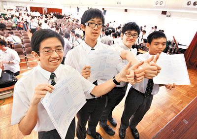 另一所傳統(tǒng)名校喇沙書院,約有30人取得6優(yōu)或以上的拔尖資格,較去年的26個(gè)有所增加。當(dāng)中2名屬“10優(yōu)狀元”。剛退休的校長王仁杰昨一早回到學(xué)校,與學(xué)生共度發(fā)榜時(shí)光,其就讀喇沙的兒子考得4A3B3C佳績,他十分滿意。兩名喇沙狀元郭凱杰和林凱健,前者指傾向修讀與商科有關(guān)科目,后者則已立愿讀醫(yī)。