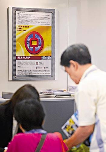交銀香港荃灣分行昨日設(shè)立特定人民幣債券銷售柜臺,中午時認(rèn)購隊伍至少同時有6人在輪候,要等候30至60分鐘。現(xiàn)場亦有一對老夫婦礙于附近中銀分行出現(xiàn)排隊人潮,專程而來才發(fā)現(xiàn)不能開投資的聯(lián)名戶口。有新客戶到中銀筲箕灣分行買人民幣債券,現(xiàn)場職員提醒,客戶必須闖三關(guān),包括開存款和投資戶口,購買人民幣債券,整個過程要1小時半。渣打及中信銀行國際太子分行,昨午未見有認(rèn)購人潮。