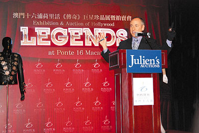 中新網(wǎng)10月12日電 據(jù)香港文匯報(bào)報(bào)道,澳門十六浦荷里活《傳奇》巨星拍賣會(huì)日前舉行。這是朱利安拍賣行于亞洲舉行的首個(gè)拍賣會(huì),吸引了來自世界各地的競投家及收藏家參與,歷時(shí)11小時(shí)的拍賣會(huì),成功拍賣共435件珍品,總成交價(jià)高達(dá)320萬美元,其中邁克爾·杰克遜的手套更是賣出21萬美元的高價(jià)。