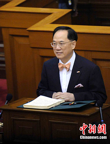 中新社香港10月13日電(記者 周志彬)香港特區(qū)行政長官曾蔭權13日在特區(qū)立法會發(fā)表題為《民心我心 同舟共濟 繁榮共享》的2010/2011年度施政報告。