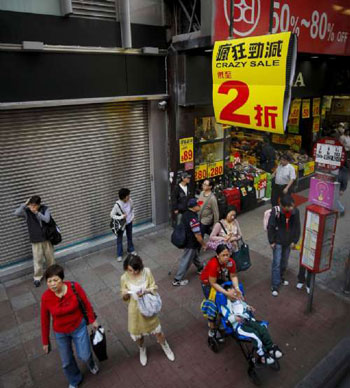 英國(guó)媒體6日刊登了一篇曾蔭權(quán)的訪問(wèn)報(bào)道,內(nèi)容談到特區(qū)政府如何應(yīng)對(duì)國(guó)際金融海嘯的沖擊。曾蔭權(quán)說(shuō),他從未見(jiàn)過(guò)如此急速的經(jīng)濟(jì)衰退,預(yù)計(jì)經(jīng)濟(jì)收縮可能較特區(qū)政府預(yù)期的2%至3%為高。“本年前兩個(gè)月的出口下跌接近四分之一,這大概是自二次大戰(zhàn)以來(lái)最厲害的跌幅!彼m(xù)道,自90年代中國(guó)成為“世界工廠”開始,轉(zhuǎn)口貿(mào)易已成為香港其中一項(xiàng)最重要的“經(jīng)濟(jì)引擎”。