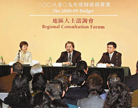 據(jù)香港文匯報(bào)報(bào)道,約150名港島地區(qū)人士參與的咨詢活動,20人先后提出意見。據(jù)了解,發(fā)言人士提及多方面的議題,包括促請政府增加長者生果金額、加強(qiáng)兒童日托服務(wù),以及紓緩?fù)泴鶎尤耸康挠绊懙。另外,有人建議政府以合理價(jià)收回隧道,解決無理加價(jià)及理順交通。亦有人建議政府將港元與人民幣掛鉤。