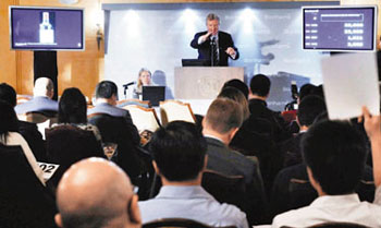 Frank Martell續(xù)說,雖然股市波動,但只影響中價酒的價格,過去18至24個月期間,他發(fā)現(xiàn)亞洲地區(qū)買家在國際紅酒市場十分活躍,“試過有50個亞洲買家爭投一支佳釀!盡artell認為香港變?yōu)椤傲憔贫悺背鞘泻,多了年輕人飲紅酒和收藏紅酒,相信數(shù)年內(nèi)香港絕對具備條件躋身國際最重要的紅酒中心之一,與倫敦和紐約并列。