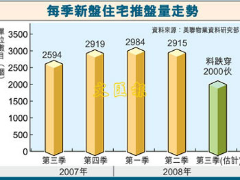 中新網(wǎng)7月7日電 據(jù)香港文匯報報道,美聯(lián)集團表示,香港過去數(shù)季發(fā)展商推盤的單位數(shù)目相當穩(wěn)定,近3季均維持約2900個單位左右的水平,預期第三季未會再有此類項目,加上近期樓市氣氛未及年初,因此相信第三季發(fā)展商推盤步伐會有所減慢,估計單位將跌穿2000個的水平,較第二季跌三成,并創(chuàng)5個季度的新低。