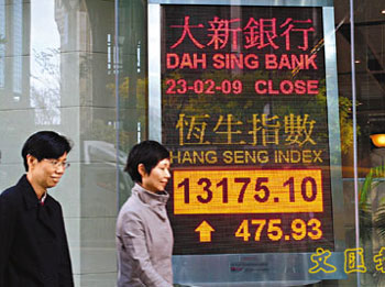 中新網(wǎng)2月24日電 據(jù)香港《文匯報》報道,市場消息指花旗集團尋求美國政府增加持股量以強化股本,消息紓緩?fù)顿Y者對銀行業(yè)的憂慮,加上內(nèi)地A股造好,好友趁勢挾倉,帶動港股23日借勢反彈,重上13000水平。