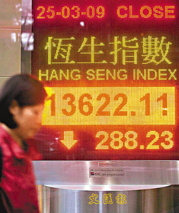 中新網(wǎng)3月26日電 據(jù)香港《文匯報(bào)》報(bào)道,近日造好的歐美股市周二晚回吐,港股25日跟隨外圍低開156點(diǎn)后,跌幅曾一度收窄,中午收市僅跌73點(diǎn),但A股午后急“插水”,令港股沽壓再度加劇,臨近收市前更跌逾300點(diǎn),恒指全日收報(bào)13622點(diǎn),跌288點(diǎn),成交額542億元。
