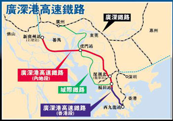 據(jù)悉,廣深港鐵路香港段的總長(zhǎng)度為26公里,日后將以雙管道行車。