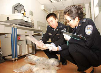 今年2月10日上午9時,緝私警員行動組埋伏藏毒窩點。因毒販住處加裝有防盜鐵門,強行破門或因延誤時間使毒販警覺而銷毀毒品。于是,緝私警察扮演修理下水道,當藏毒窩點房門打開,4名緝私警察便持槍而入,迅速制服5名毒販。經(jīng)搜查,現(xiàn)場查獲白色粉狀物品一包,經(jīng)鑒定為毒品氯胺酮,重約1公斤。