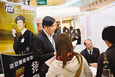 泛亞警衛(wèi)4日提供80個保安員職位,該公司培訓經(jīng)理曾沛焜表示,為留住人才,集團旗下保安員今年的薪酬較去年上升5至10%,以高級大堂經(jīng)理為例,月薪由去年的10500元上升至11500元,“英語普通話是基本要求,也要懂得急救技術(shù)”。