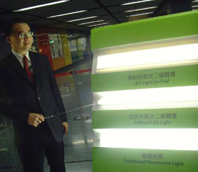 港鐵去年初耗資四百萬港元,在港島、荃灣及將軍澳三趟市區(qū)地鐵列車進(jìn)行車廂LED環(huán)保燈測試計劃,港鐵總結(jié)稱,測試收到良好效果,除能有效節(jié)省能源外,LED燈的壽命較傳統(tǒng)光管耐用高四倍,達(dá)五萬小時,且更換時只需換走芯片便可,不會釋放水銀和制造光管垃圾。同時LED光線更接近自然日光,并不會釋放紫外光,可保護(hù)乘客眼睛,在測試期間廣為乘客歡迎。