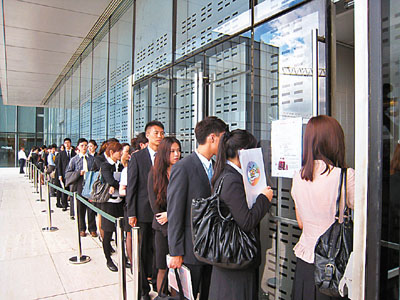 港龍舉辦的招聘會原定昨晨9時開始,但因8時前已有逾千人排隊等候,排頭位的應征者更于凌晨5時許抵達,港龍決定提早于8時開始派籌,1,200個面試籌于45分鐘內派完,應征者則分別獲安排昨日或今日面試及筆試。在8時45分抵達現(xiàn)場的陳小姐,到場后才知道面試名額已滿。她稱,未預料招聘反應如此踴躍,加上母親特別陪同到場打氣,對未獲面試機會感到無奈,認為港龍應臨場應變增加面試名額。